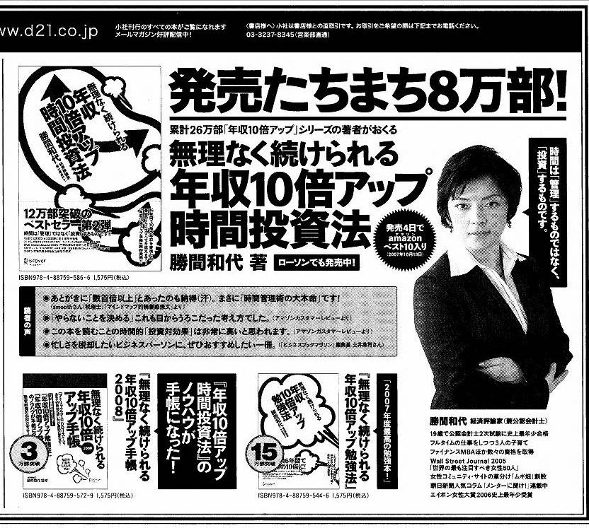(参考記事:【真打登場!】「無理なく続けられる年収10倍アップ時間投資法」勝間和代)