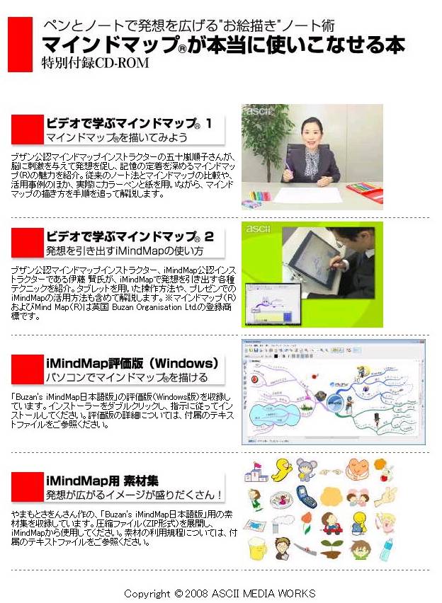 【必見!】月刊アスキー2月号特別付録は、マインドマップ好きには見逃せない件(2008年01月08日)【マインドマップ】「できる社員」の最強メソッド マインドマップ(R)ビジネス超発想術(2007年09月13日)