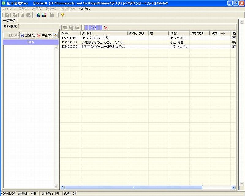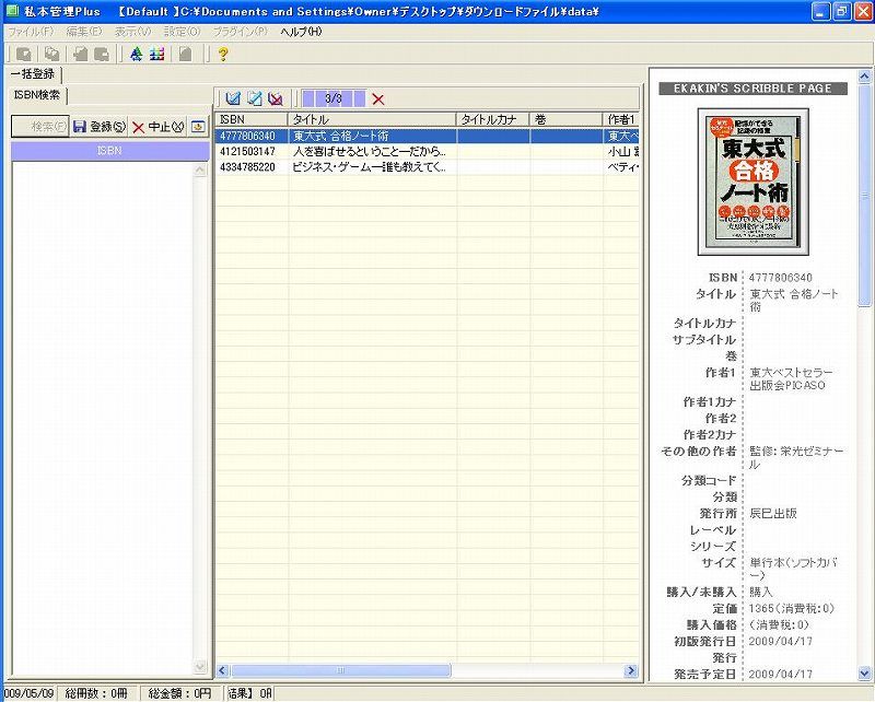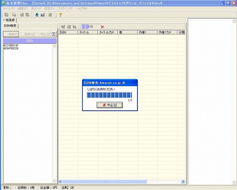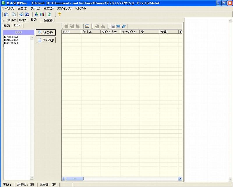 そこで登場するのが、ISBNコードからアマゾンのデータを持ってくるソフト、「私本管理Plus」。