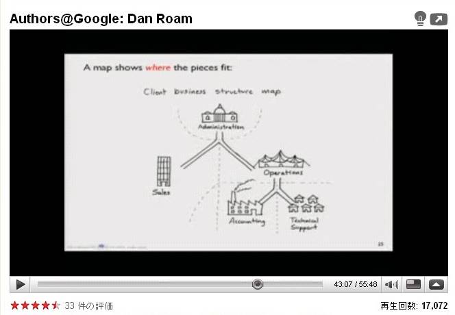 いつもなら、本の画像を携帯でパシャパシャやるところなのですが、今回は上記で触れたように、著者のダン・ロームの動画がYouTubeありましたので、そこからいくつかピックアップしてみます。